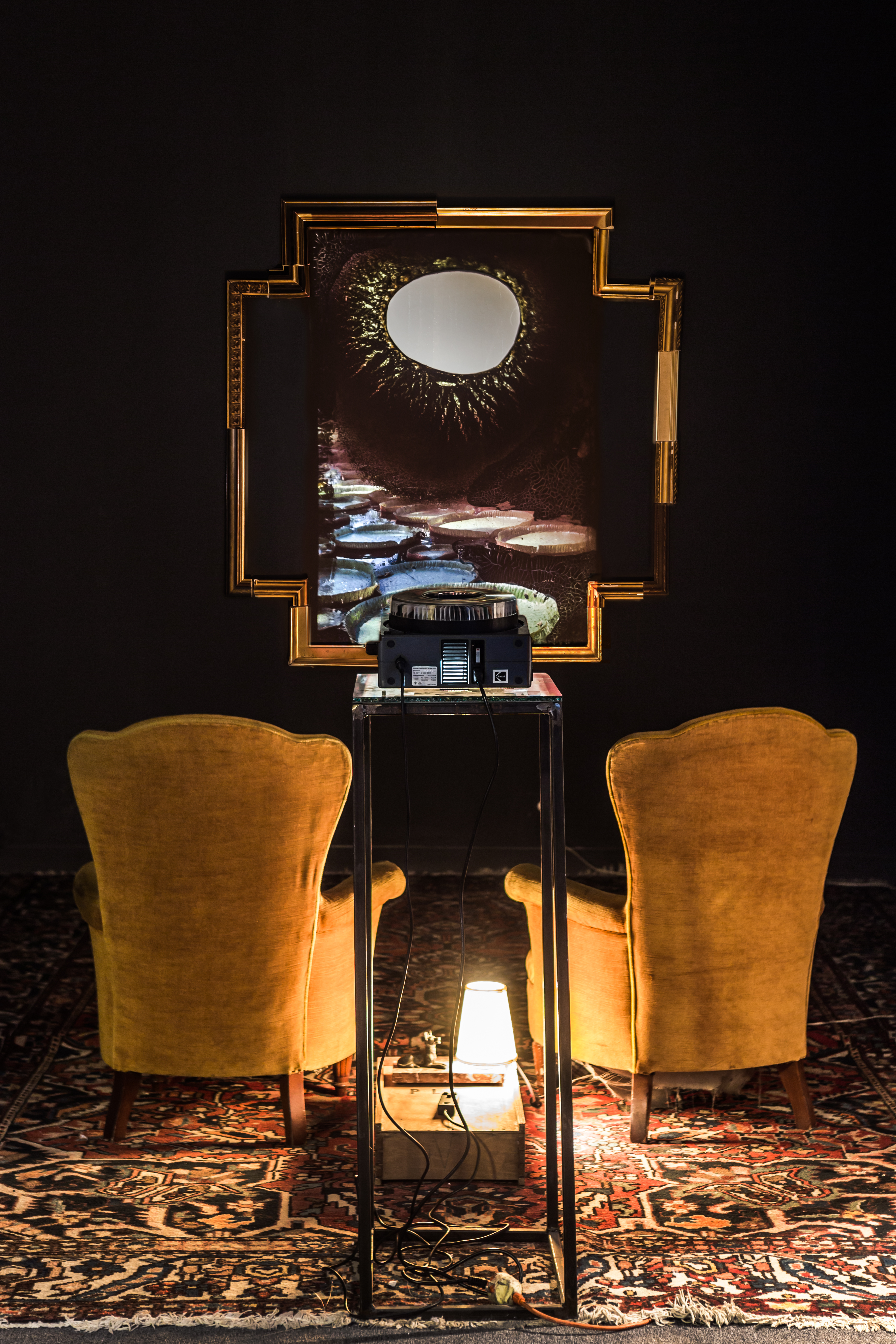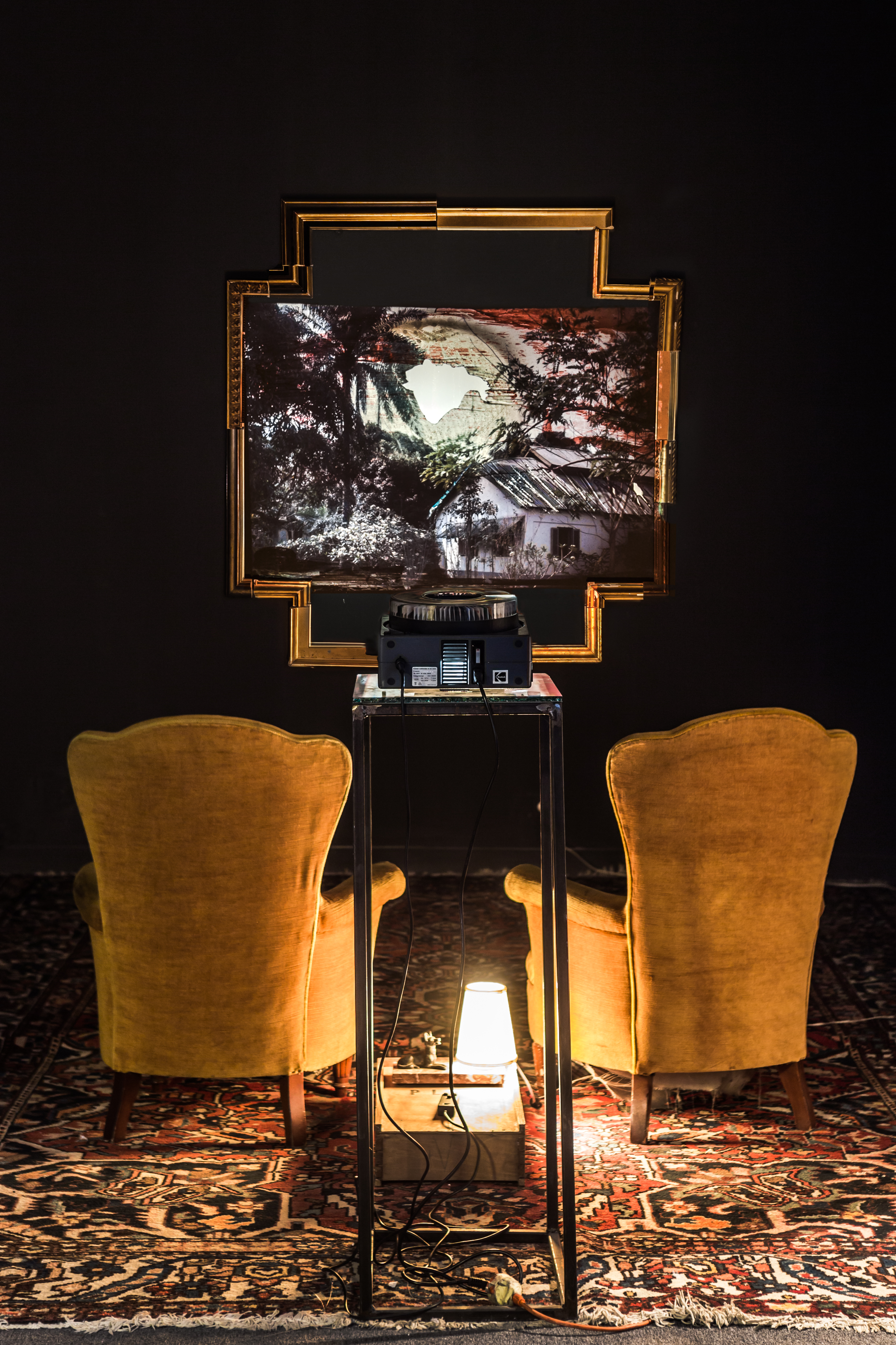 Instalación. Proyector de carrousel de diapositivas. Diapositivas encontradas intervenidas